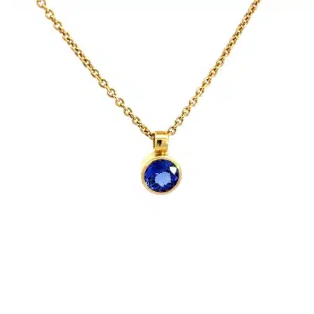 Kette aus 18 Karat Gold mit Tansanit rund in einer Zargenfassung