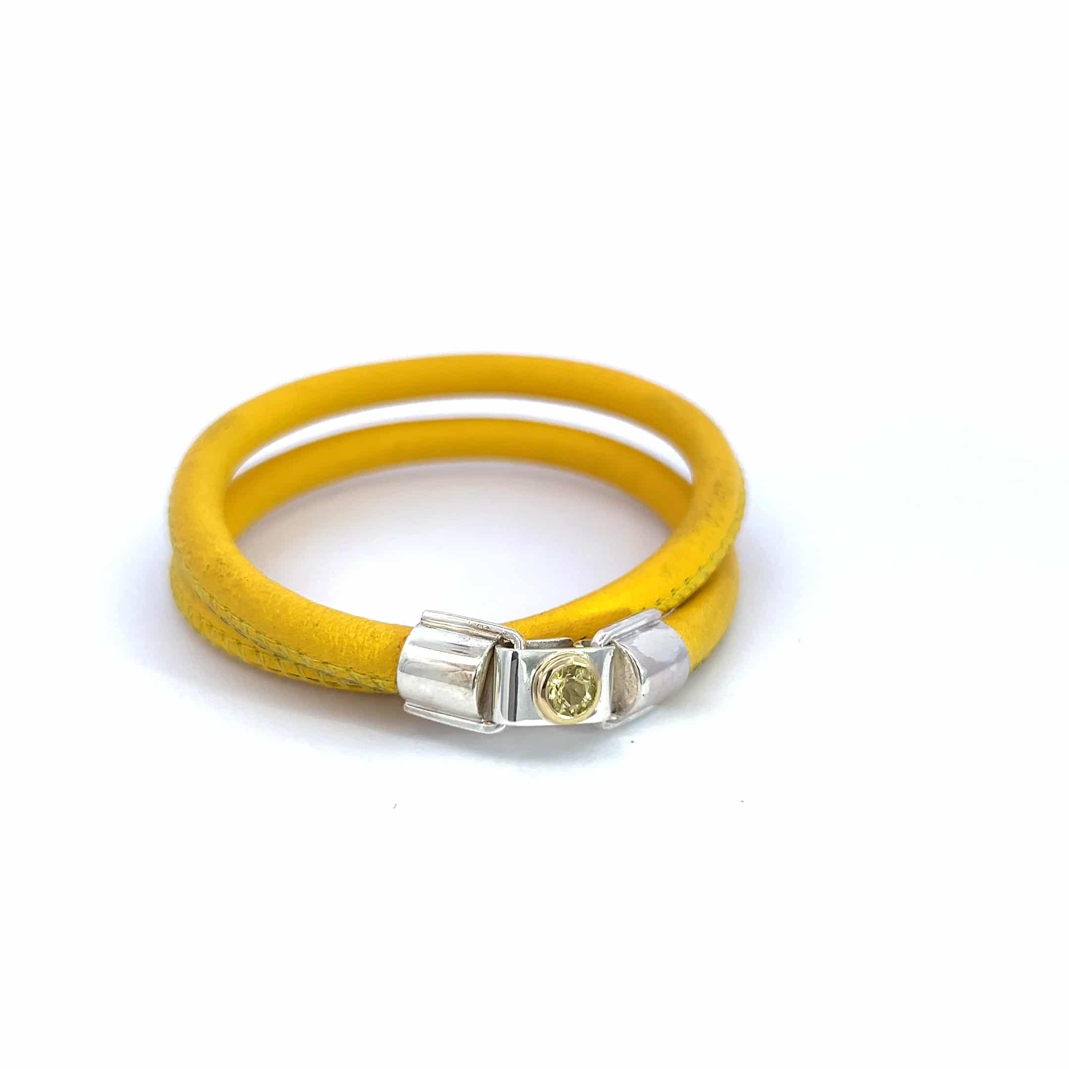 Armband aus Leder mit Verschluss aus Silber mit gelbem Beryll