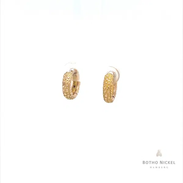 Kreolen aus 18 Karat Roségold in Rochenoptik, Aussendurchmesser ca. 13 mm, Stärke ca. 2.4 mm , Breite ca. 4 mm 845 €