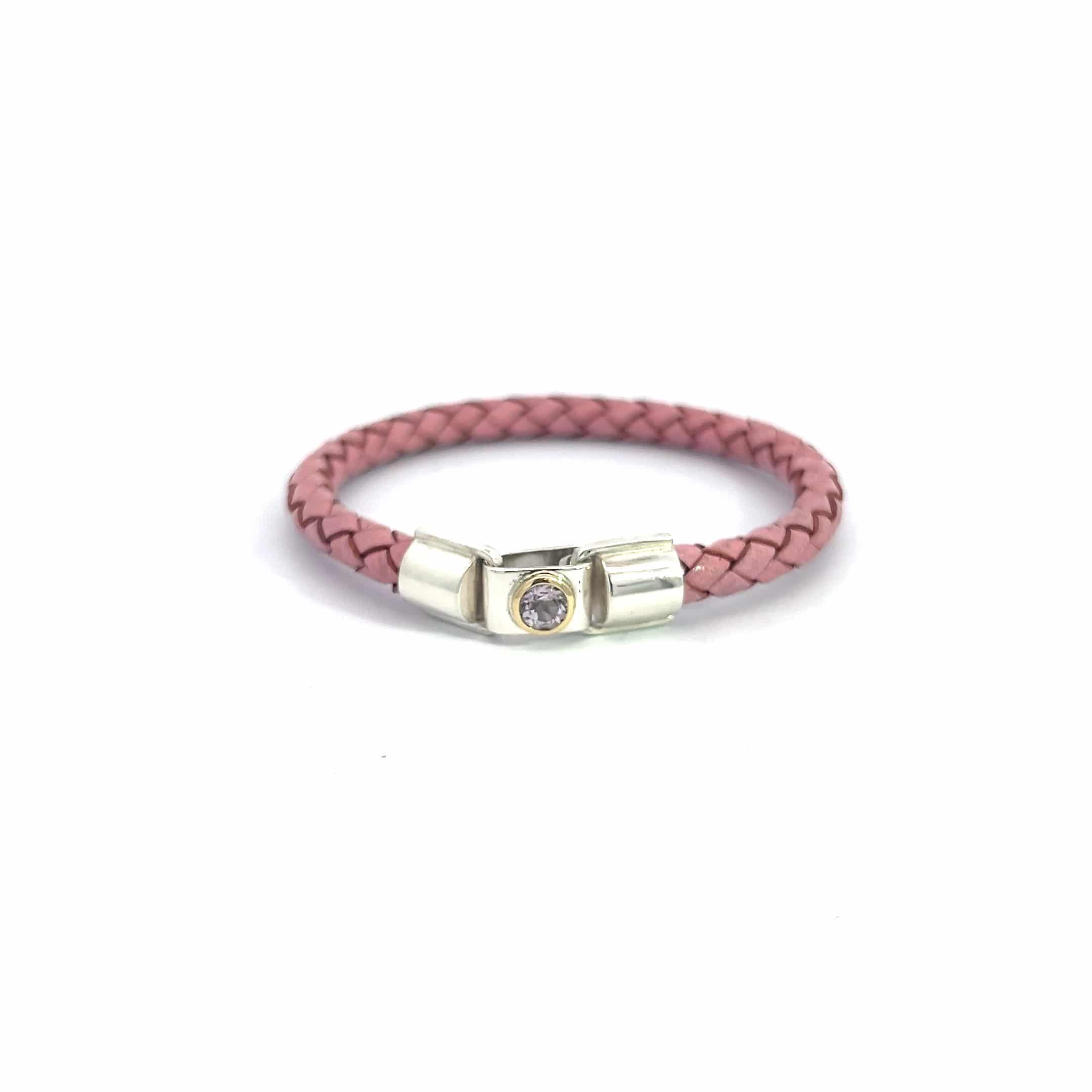 Lederarmband mit Verschluss aus Silber mit Amethyst