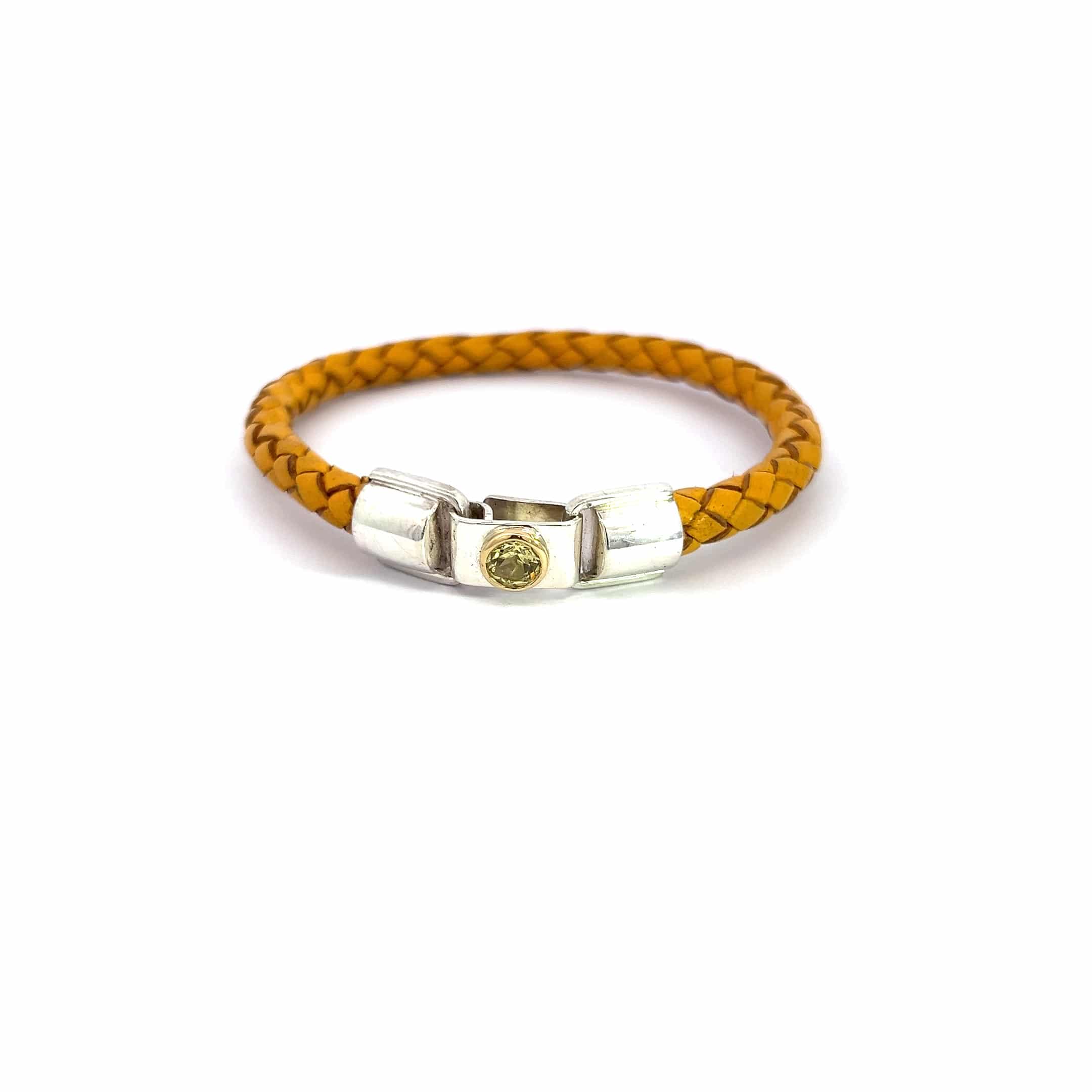 Lederarmband mit Verschluss aus Silber mit gelbem Beryll