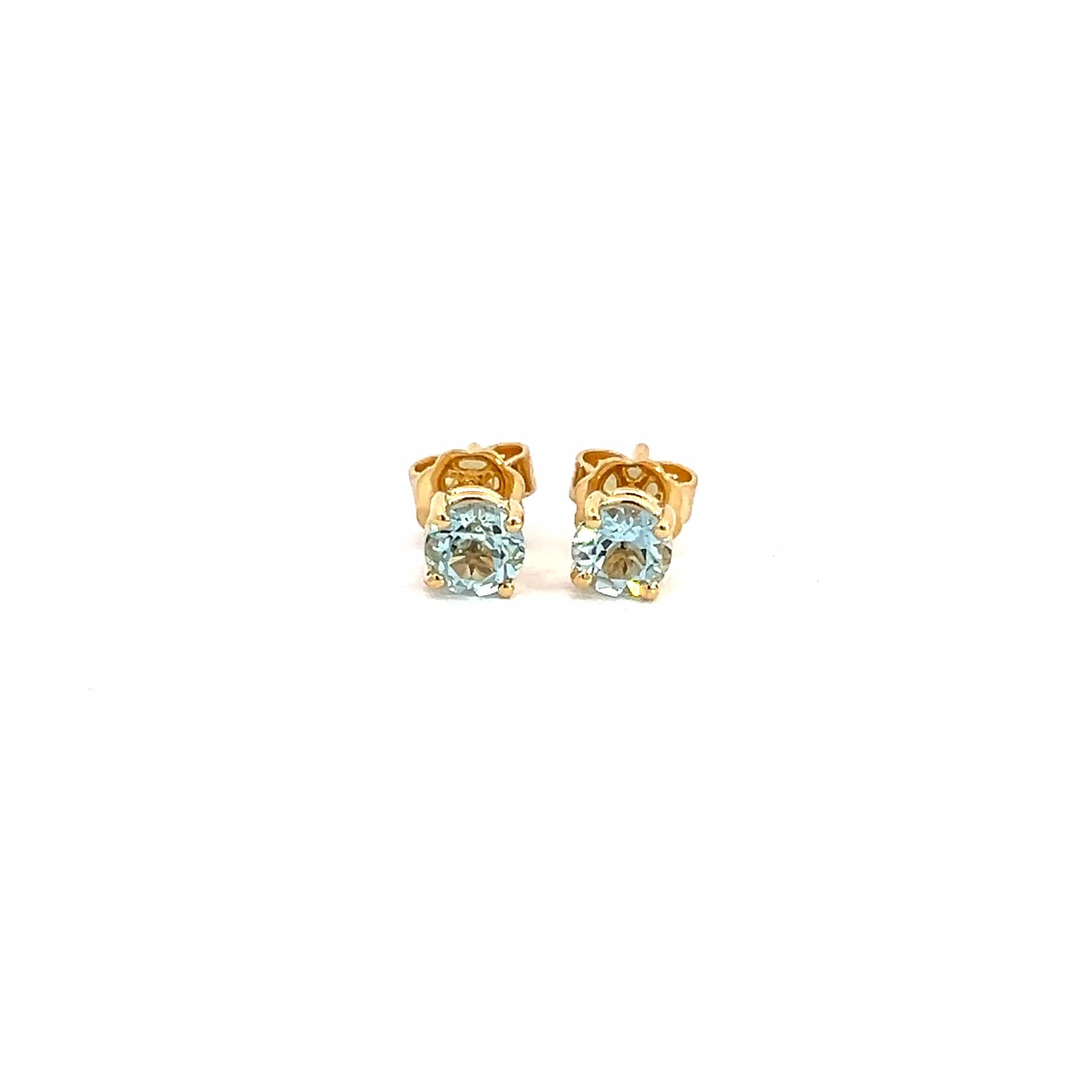 - Ohrstecker aus 18 Karat Gold mit Aquamarinen mit einem Durchmesser von 5 mm.