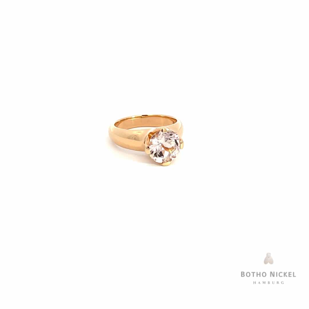 - Ring aus 18 Karat Roségold mit einem runden facettierten Morganit mit einem Durchmesser von 9 mm in der Botho Nickel Krappenfassung.